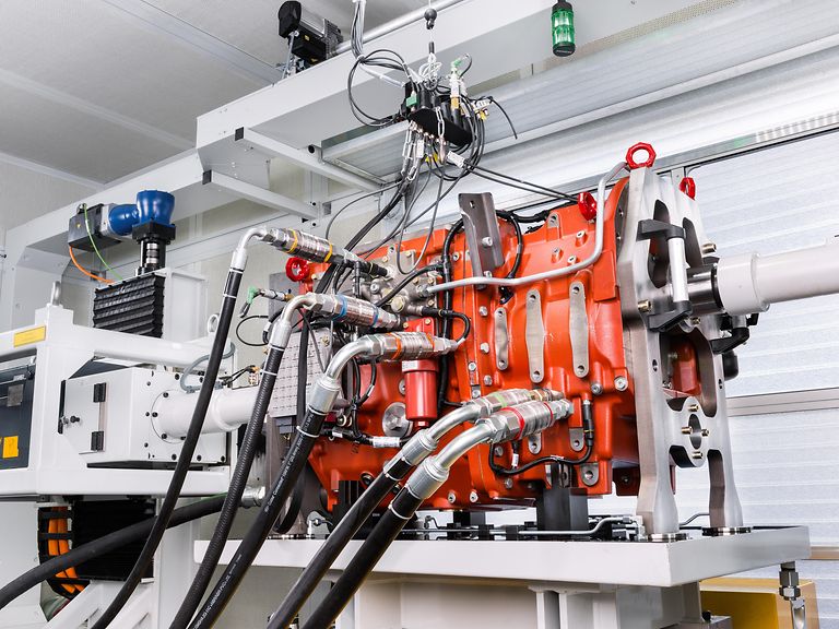 Ein Fördersystem transportiert den Kraftstrang in eine hochmoderne Lackieranlage. Hier erledigt ein ganzes Team von Robotern alle Arbeitsschritte. Komplett entfetten. Mehrstufig reinigen. Perfekt lackieren. Die digitalisierte Steuerung und Kontrolle macht den gesamten Prozess sicher und wirtschaftlich. Die Anlage arbeitet nach den höchsten Umweltstandards und sichert Millimeter für Millimeter makellose Lackierqualität.
