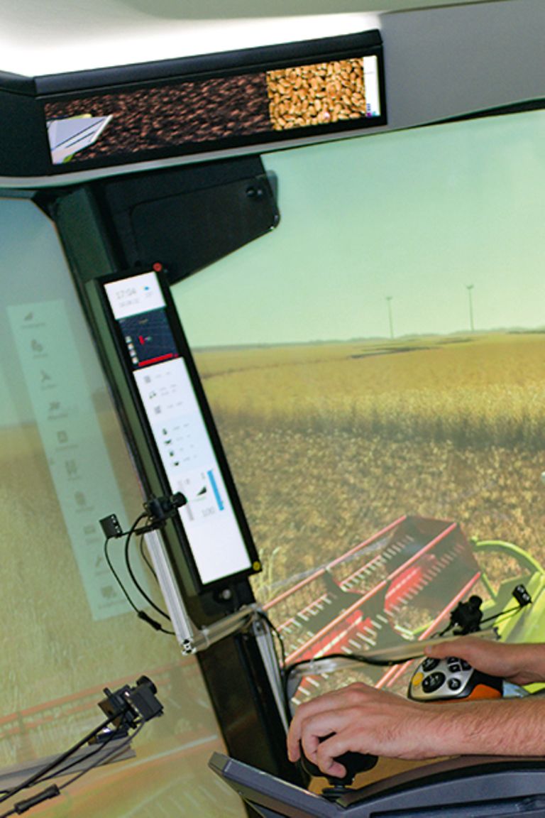 Videos anschauen, Messengerdienste nutzen, E-Mails schreiben oder Büroarbeiten erledigen – fast könnte man meinen, beim Projekt Fahrerkabine 4.0 ist nichts unmöglich. Aber Scherz beiseite – Hauptziel des Projekts ist es, eine Arbeitsumgebung zu schaffen, in der die Fahrer auch in Zukunft zufrieden sind und möglichst effizient arbeiten können. Dabei ist die Ausgangssituation v. a. davon geprägt, dass die Automatisierung von Maschinenfunktionen insbesondere bei den Mähdreschern weiter zunimmt. Doch damit geht auch einher, dass die Fahrer immer weniger zu tun haben, sodass sie müde werden oder sich unterfordert fühlen könnten. Deshalb geht das Projekt der Frage nach, wie die Kabine gestaltet sein sollte, damit die Fahrer zusätzlich zu ihren Hauptaufgaben auch andere Tätigkeiten ausüben können.