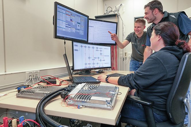 Wenn die Entwickler mit ihren Laptops auf einem der Testtraktoren im Einsatz sind, arbeiten sie zumeist an der Feinabstimmung einzelner Systemparameter. Während der Traktor auf dem Acker in Aktion ist oder Transportaufgaben erledigt, ist der Laptop direkt mit den Steuergeräten verbunden. Auf diese Weise können die Ingenieure die Parameter in Echtzeit anpassen und optimieren.