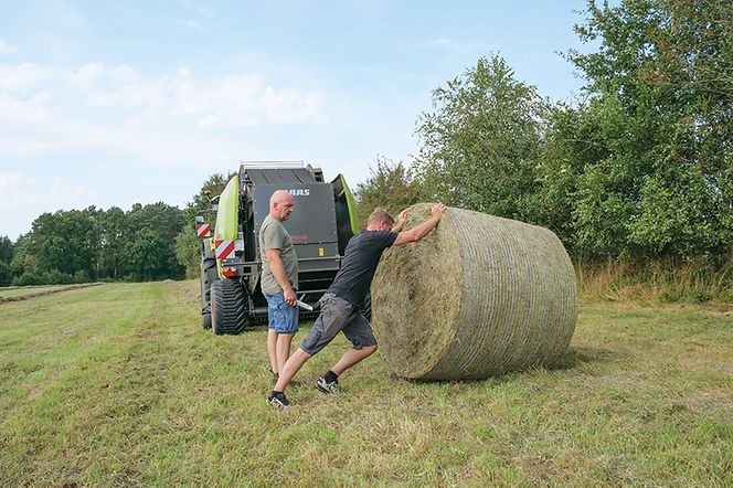 Hellmann bewirtschaftet einen 60-Hektar-Betrieb im Nebenerwerb mit Jungviehaufzucht im Vertrag, und er presst im Lohn, vor allem für Milchviehbetriebe der Region Walsrode, südöstlich von Bremen. Pro Jahr kommt er auf etwa 5.000 Ballen. Stroh macht davon etwa zwei Drittel aus, der Rest sind Heu und Silage.