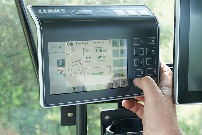 Am dritten Einsatztag mit der Testmaschine steht das Pressen von Heuballen für einen benachbarten Milchviehbetrieb an, der mit seiner Herde auf eine Durchschnittsleistung von über 12.000 Kilogramm pro Kuh und Jahr kommt. „Das wird heute ein echter Härtetest“, meint Marco Hellmann. Gepresst wird auf einer Naturschutzwiese mit überständigem Gras, das mit einem Seitenschwader gelegt wurde. „Das heißt, wir haben sperriges Material in ungleichmäßigen Schwaden“, fasst Hellmann nüchtern zusammen.
