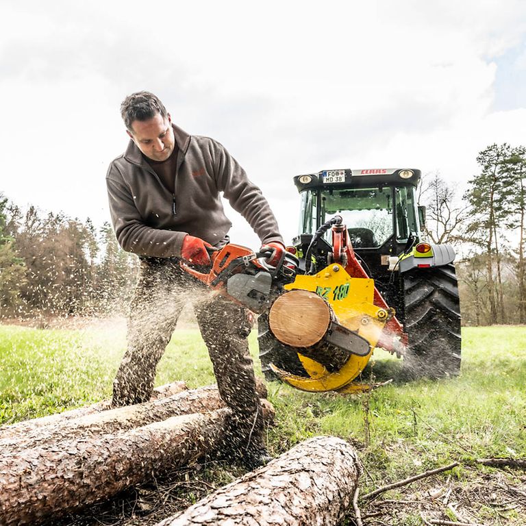 Matthias Distler ist es wichtig, immer das passende Gerät zur Hand zu haben. Für die Arbeit im Forst setzt er auf sein ELIOS Duo, bei dem meist ein Traktor mit Seilwinde und der andere mit Rückezange im Zusammenspiel läuft.