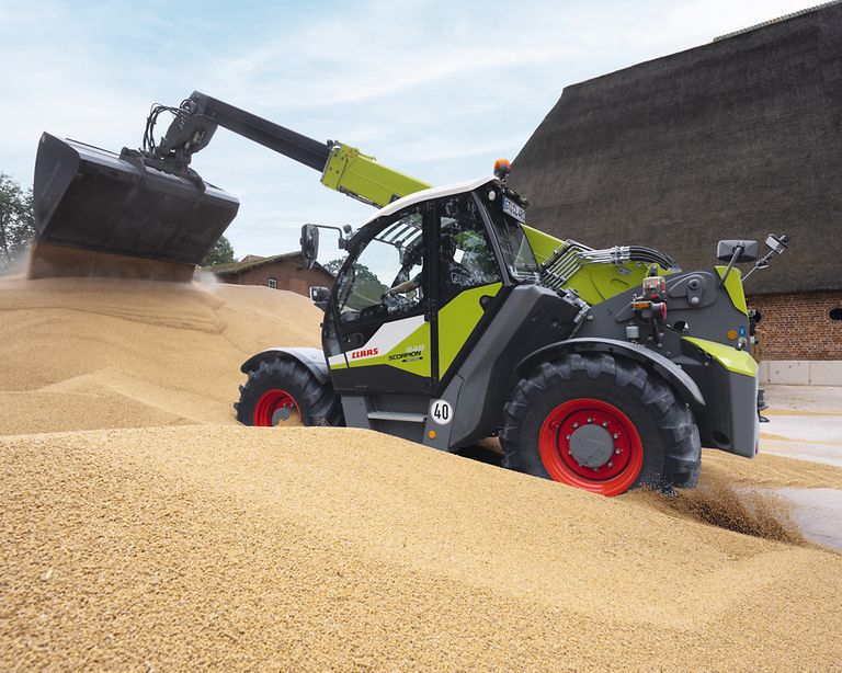 Beide bieten eine Hubhöhe von rund 7 m. Und schon beim leichteren SKORPION 741 darf die Last 4,1 t schwer sein, der SKORPION 756 hebt bis zu 5,6 t Gewicht. Alle CLAAS Teleskoplader haben einen feinfühlig dosierbaren Antrieb, eine intuitive Bedienung und eine ergonomische Kabine mit großen Glasflächen für optimale Übersicht.